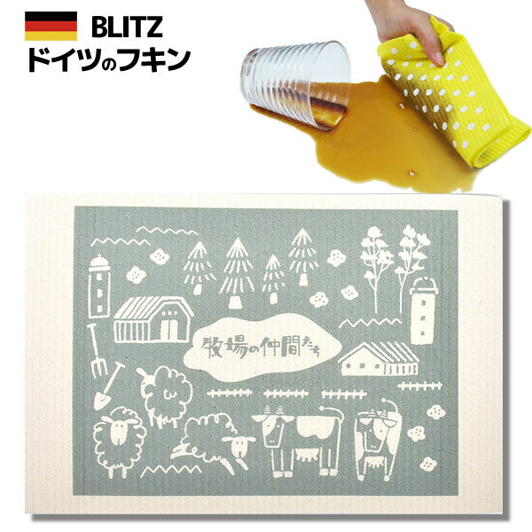 ドイツのフキン★デザインブリッツ「897) 牧場の仲間たち」A4サイズ 約200×300×2mm(乾燥時) 【BLITZ ふきん 布巾 クロス キッチン キッチンクロス キッチンワイプ スポンジワイプ ドイツ製フキン 】 窓 ガラス 結露 水切りマット