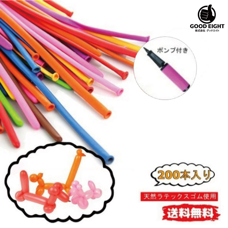 200本【送料無料】【ポンプ付き】バルーンアート ペンシルバルーン ハロウィン 風船 200本 風船 マジックバルーン ツイストバルーン イベント 子供会 景品 お祭り くじ引き 縁日