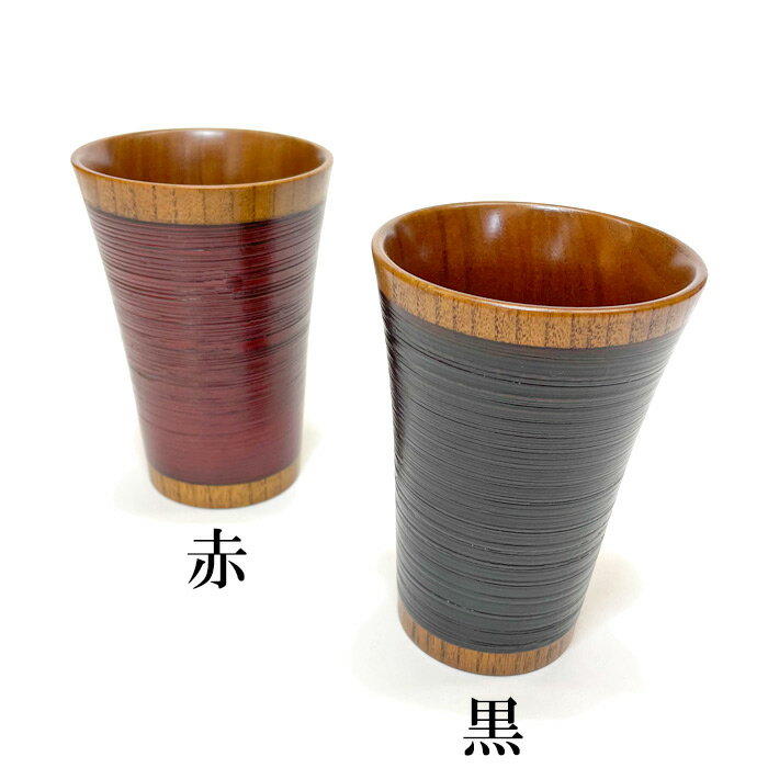 木製漆塗りフリーカップ 天然木 ビアカップ 酒器 コップ 木のカップ 刷毛目 横縞 ビールに酎ハイにジュースに