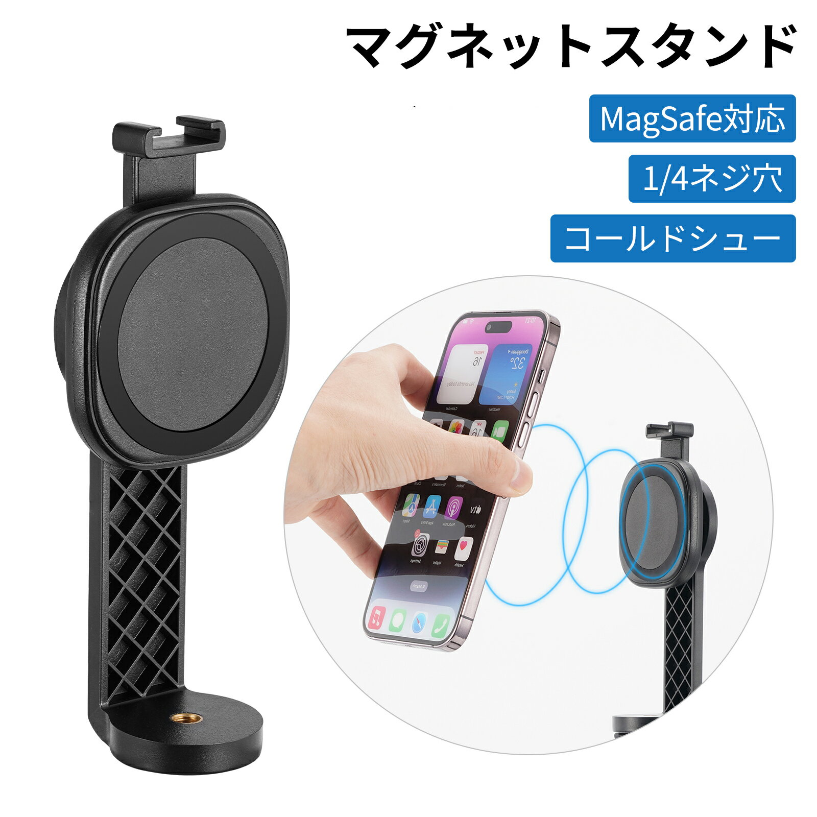 マグネット式 三脚 スマホホルダー マグネット式マウント スマホスタンド magsafe 対応 ミニ スマホ 軽量 磁力 磁石 スマートフォン三脚マウント 1/4インチネジ穴 iPhone16/15/14/13/12/11/10/9 Android カメラ対応 iPhone17 マグセーフ