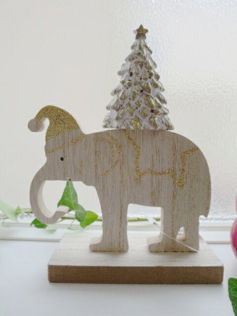 【クリスマス】クリスマスグッツ 雑貨 【1000円ポッキリクリスマス】小物 置物 ウッデンエレファントクリスマス 冬 木製 オブジェ