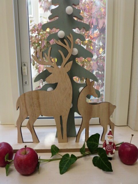 【クリスマス】ギフト クリスマス雑貨 木製 置物 トナカイ ライト付き 北欧