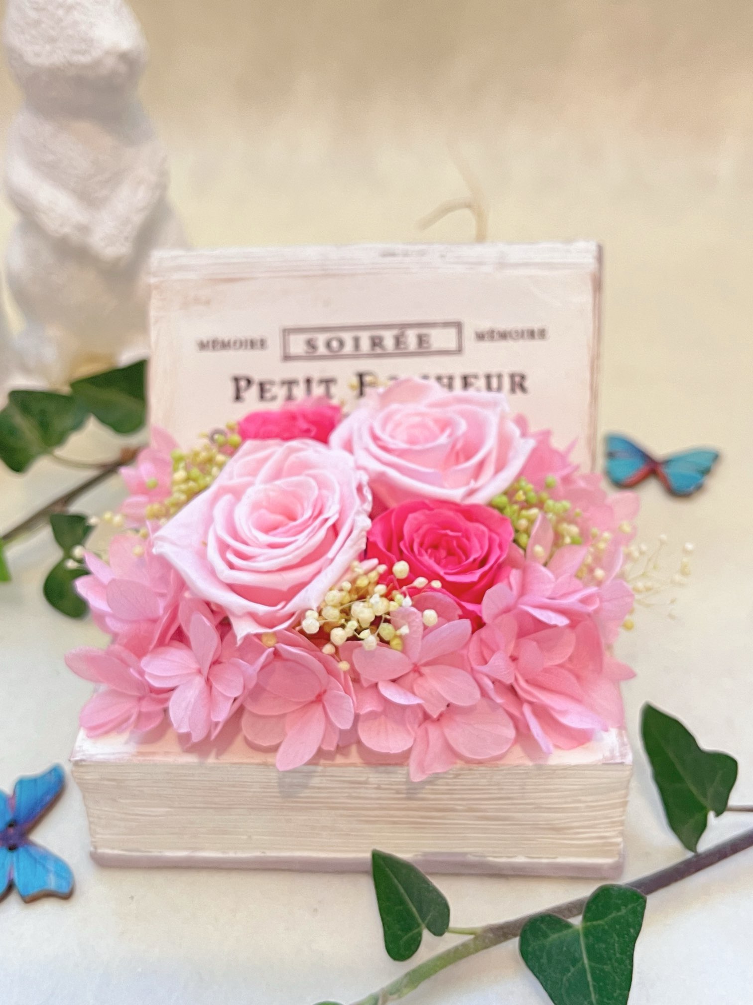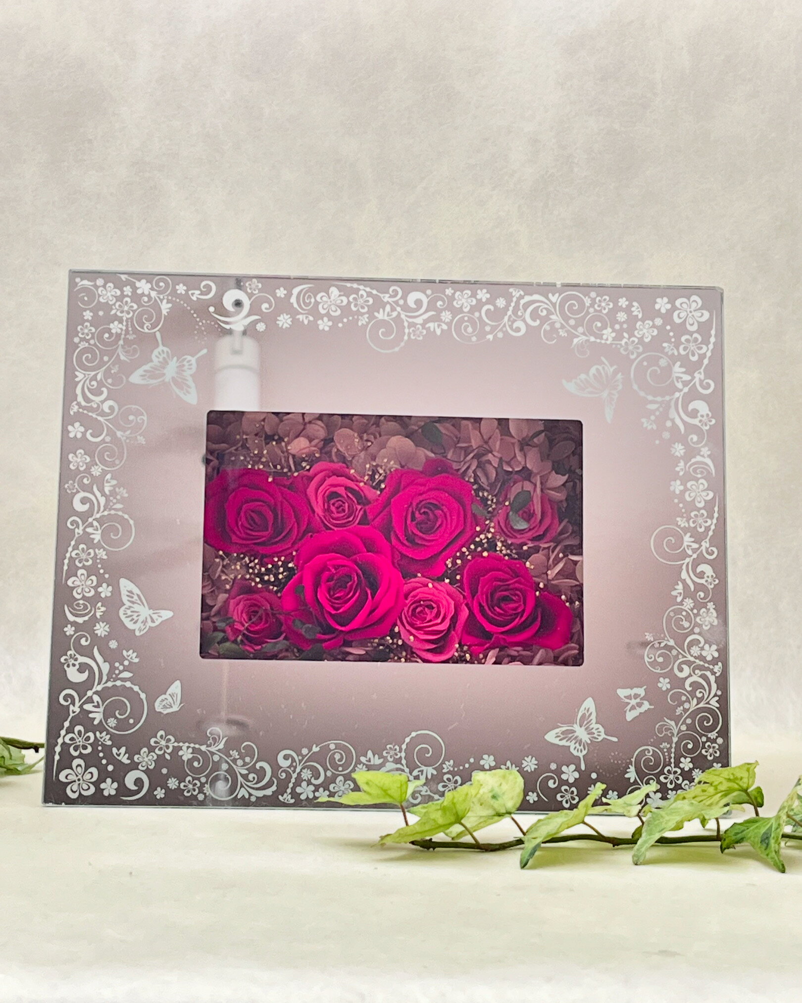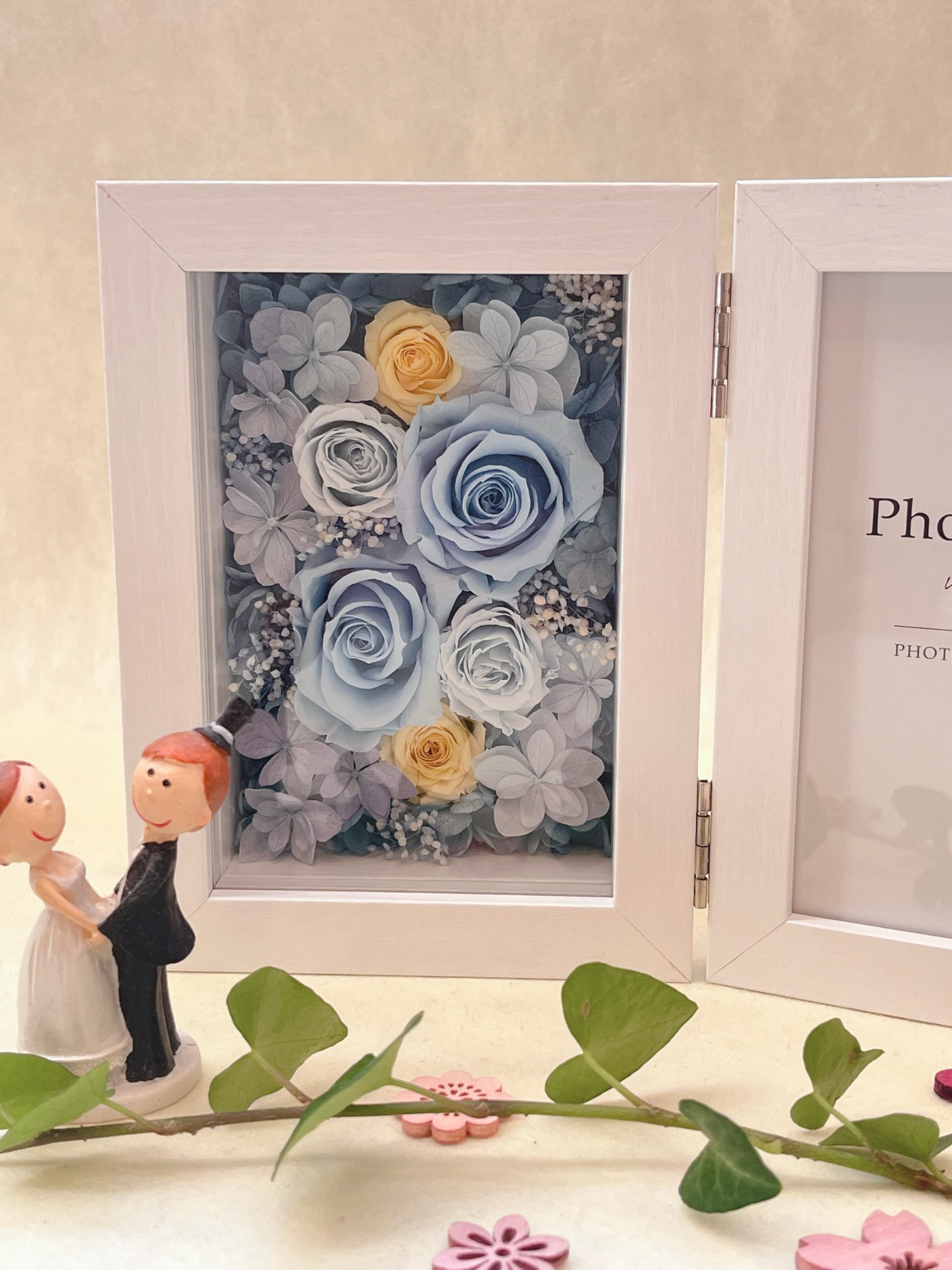 【プリザーブドフラワー】 ミラーフレーム パピヨン白 お祝い お誕生日 結婚祝い 出産祝い 母の日 お礼 新築祝 退職祝い 鏡 フレーム