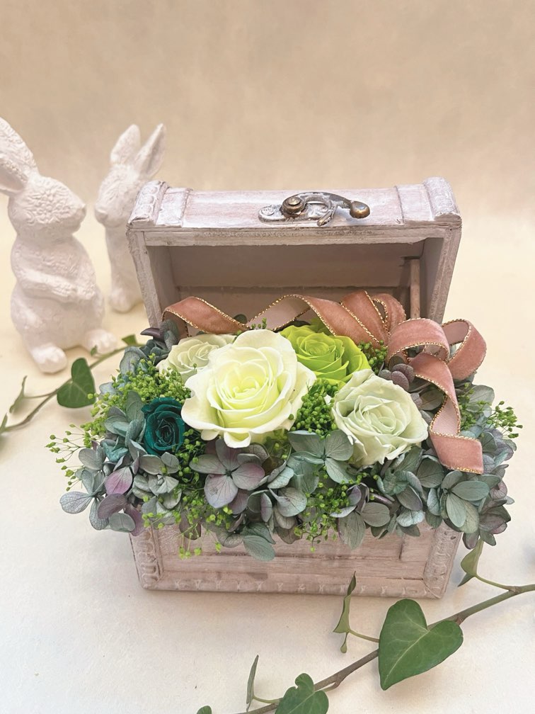 【プリザーブドフラワー】ギフト プレゼント ボックス 白い箱 お祝い お誕生日 結婚祝い 母の日 敬老の日 退職 卒業 お見舞い 白 グリーン