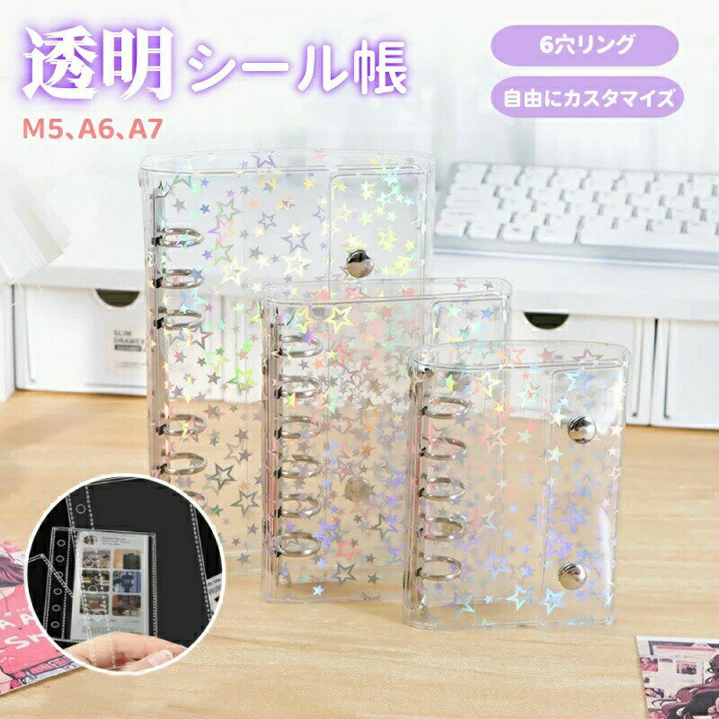 1点20%OF即納 【2点目で52%off】[ SNSで話題] 透明シール帳 キラキラ輝く シール帳カバー シールバインダー PVCカバー クリア手帳 透明バインダー 6穴リング カスタマイズ手帳 DIYデコ ミニ手帳 コンパクト手帳 スケジュール帳 推し活 持ち運び便利 防水 ホログラム星柄
