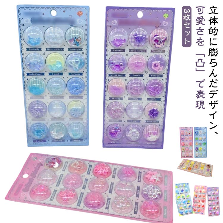 【3枚セット】3D シール 浮き彫りクリスタル 立体シール デコシール つやつや デコレーション パーツ 装飾 ぶっくり 子供 女の子 小学生 プレゼント 励ましステッカー 手帳デコレーション DIY おはじきシール マルチデコ用 スマホケース 可愛い アクセサリー