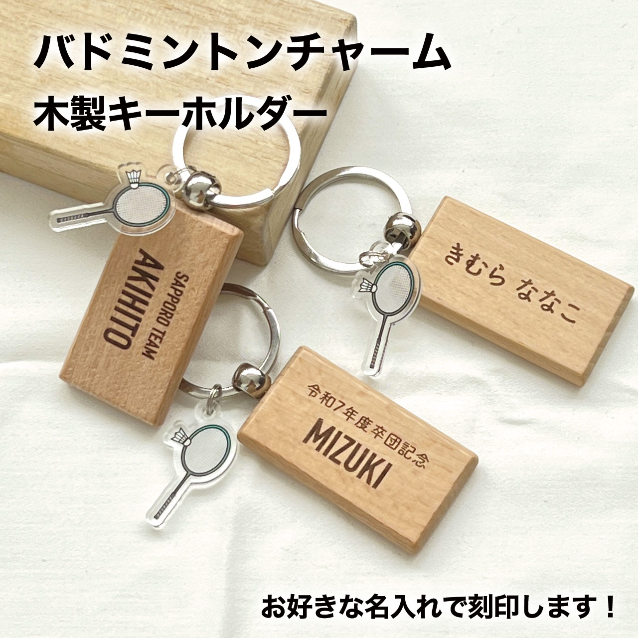 バドミントン バドミントン部 バド部 シャトル チャーム プレゼント 記念品 名入れ おしゃれ かわいい 木製 キーホルダー 引退 卒部 部活 卒業 卒団 名前入り プチギフト 卒団記念品 卒業記念品 送料無料