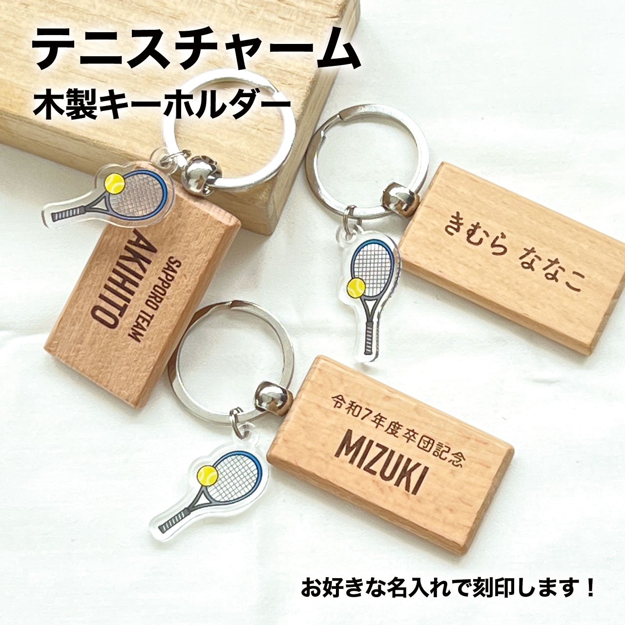 テニス テニス部 テニスボール チャームプレゼント 記念品 名入れ おしゃれ かわいい 木製 キーホルダー 引退 卒部 部活 卒業 卒団 名前入り プチギフト 卒団記念品 卒業記念品 送料無料