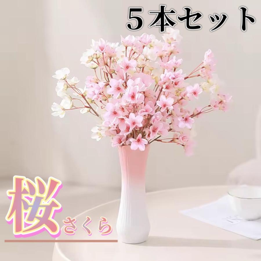 ☆5本セット☆ 造花 桜 さくら 桜の木 枝 花びら 屋外OK ピンク 日本 フェイクグリーン 和室 リビング 美容室 カフェ