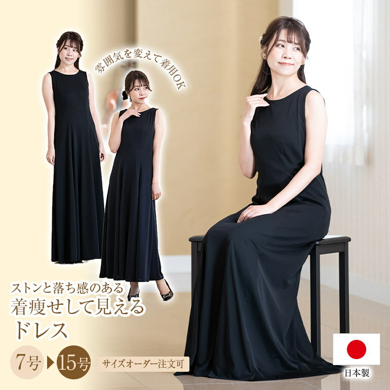 ロングドレス 黒 演奏会 演奏会用ドレス ピアノ 発表会 大人 ステージ衣装 大きいサイズ 着痩せ 日本製 パーティードレス ブラック コンサート オーケストラ op3728
