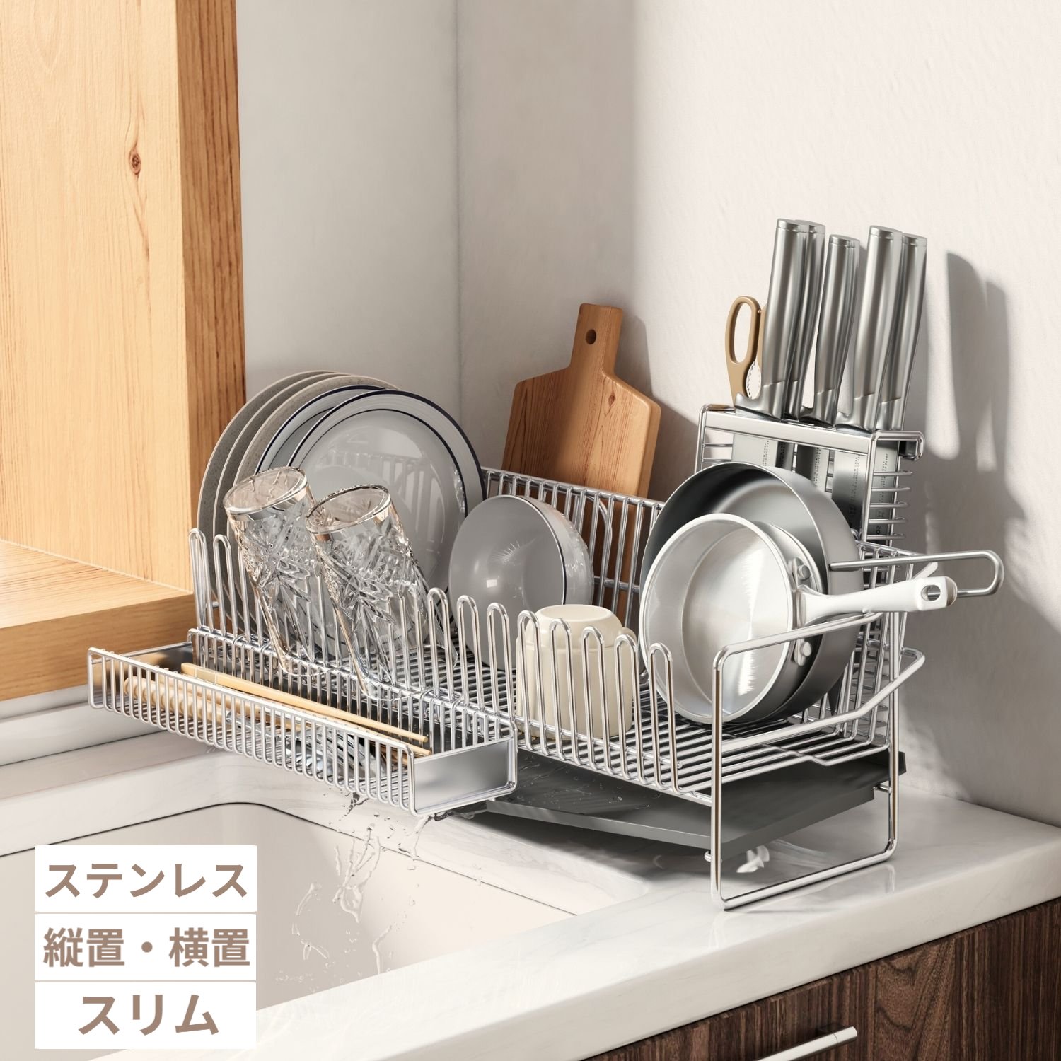 【5倍積分+500円OFF 限定クーポン配布中!】水切りラック シンク上 スリム ステンレス 水切りかご 大容量 食器 乾燥 キッチン 一人暮らし おしゃれ シンク横 狭い コンパクト 水筒 お皿 立てる まな板立て 箸立て 包丁立て スポンジラック 洗い物 幅66cm 87cm 奥行21cm