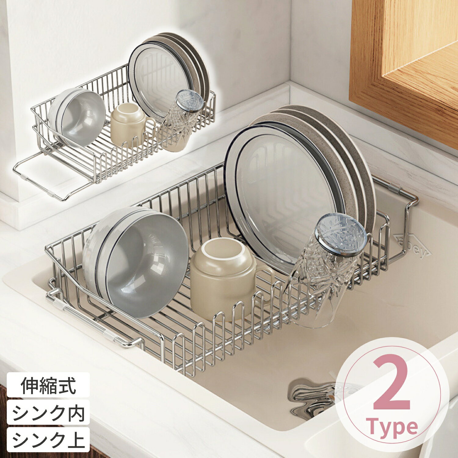 水切りかご ステンレス シンク内 伸縮 スライド式 大容量 箸置き付き ディッシュラック コンパクト設計 かわいい おしゃれ 北欧 シンプル 一人暮らしに最適 キッチン用 水切りラック 水切りバスケット 洗い物