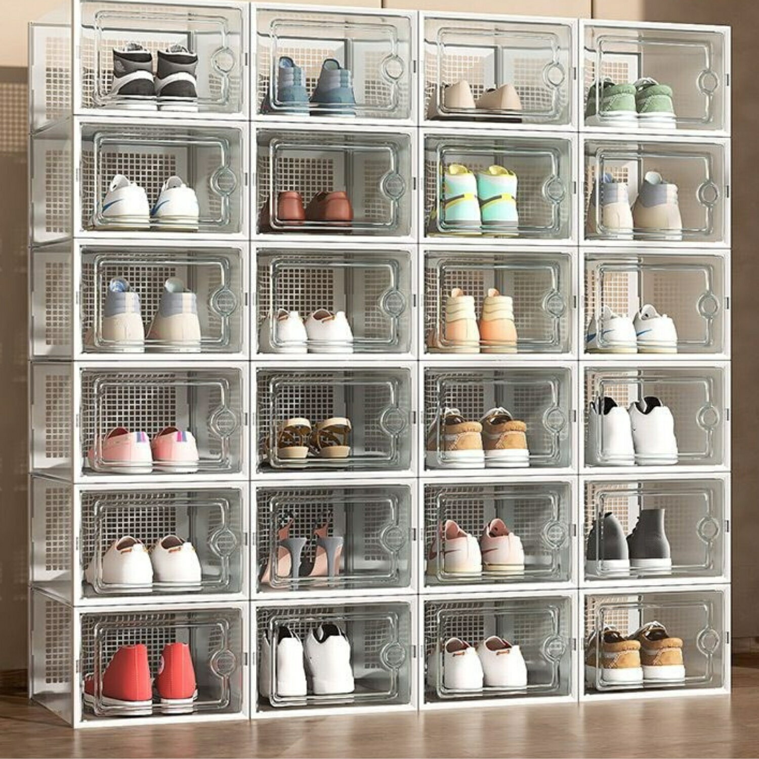 透气,シューズボックス 12個セット 靴箱 収納 33x23x14cm プラスチック透明 スニーカーケース 男女兼用サイズ 防水 防塵 防汚 通気 多層 靴収納ボックス 大容量 靴ケース 開閉扉 組み立て式 スニーカー、革靴、バッグ、小物、玄関収納用