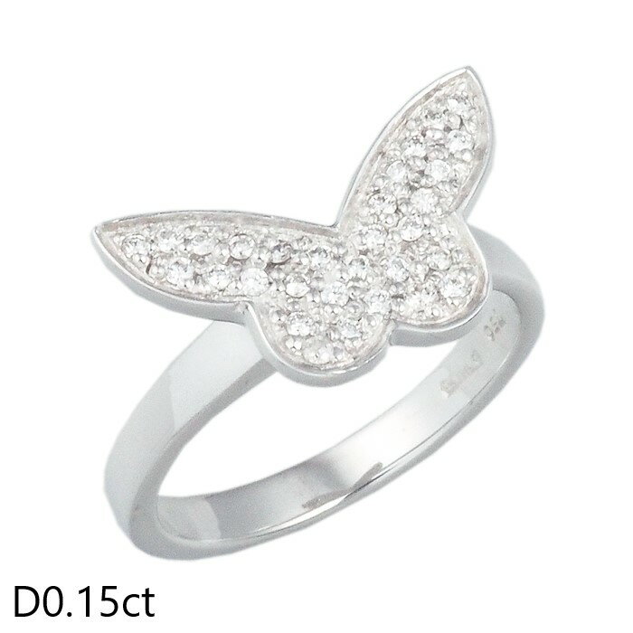 音羽屋■ ダイヤモンド/0.15ct K18WG バタフライ デザイン リング 11号 仕上済【中古】