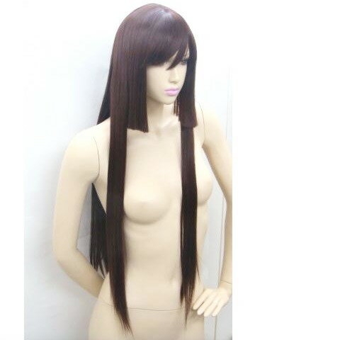 安価な価格で人毛フルウィッグを! KKEMー45DBーMサイズ ダークブラウン ロングレイヤー人毛100% 生え際半透明ウレタン フルウィッグ 医療用