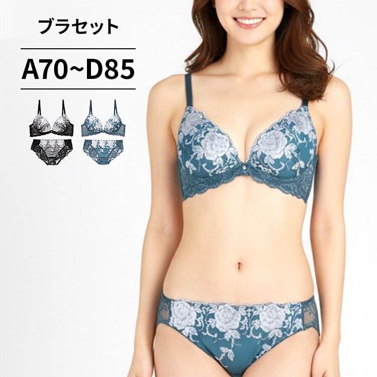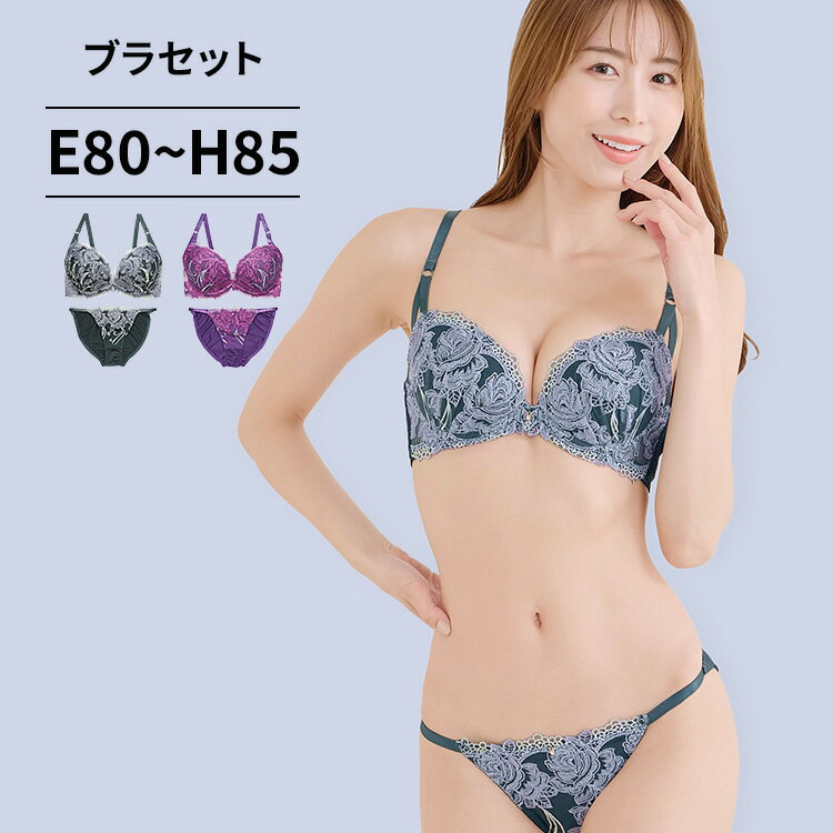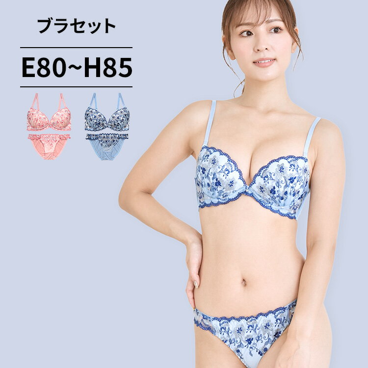 脇高ブラジャー ショーツ セット ブラ&ショーツ(ブラ ブラセット ブラショー ブラショーツ)[EFGHカップ]花柄 薔薇柄 バラ柄 ローズ柄 刺繍 刺しゅう ししゅう チュールレース 脇肉 脇すっきり 着やせ 細見え 大きいサイズ ぽっちゃりブラジャー [三恵]