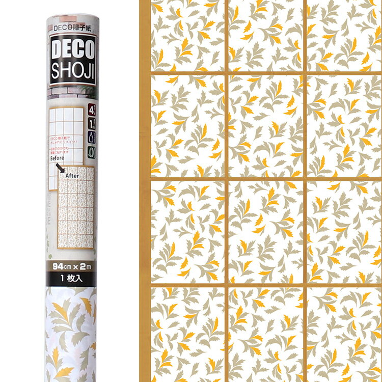 DECO障子紙 リーフ(ベージュ)フリーサイズ(一枚貼り)【幅94cm×2m】