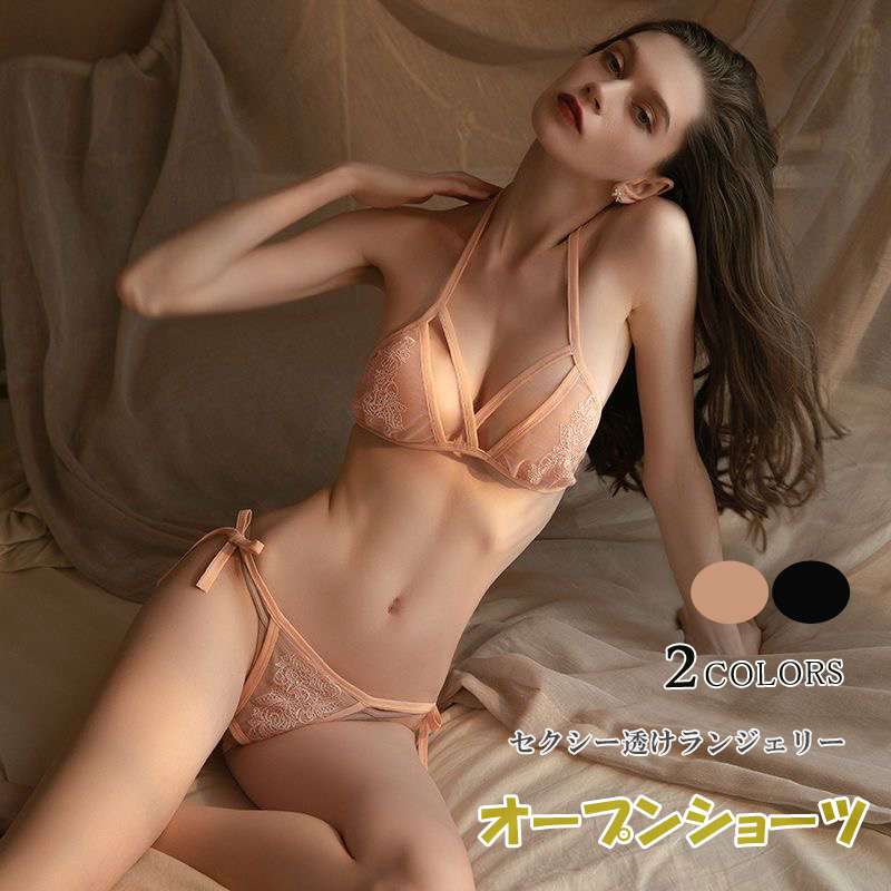 ブラ ショーツセット セクシー ランジェリー オープンクロッチ ブラショーツ 2点セット シースルー 穴あき レディース 上下セット 勝負下着 紐 ひもパン ブラジャー 女性下着 透けブラセット ナイト スケスケ インナー 薄型 三角 エロ下着 超過激 花柄レース ベビードール