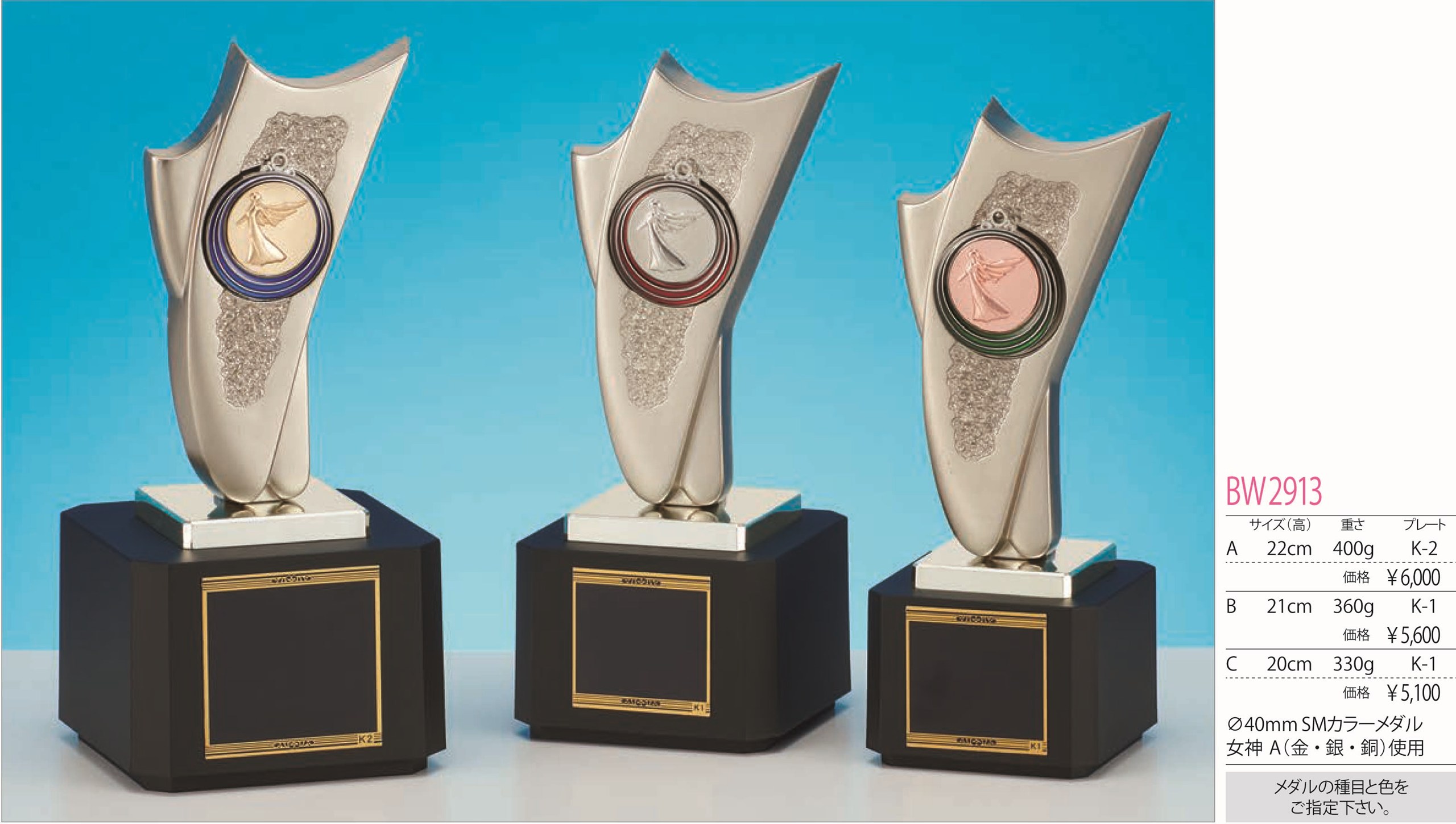 【文字彫刻無料】トロフィー(T374)/リボン無料/先端は樹脂製メダル