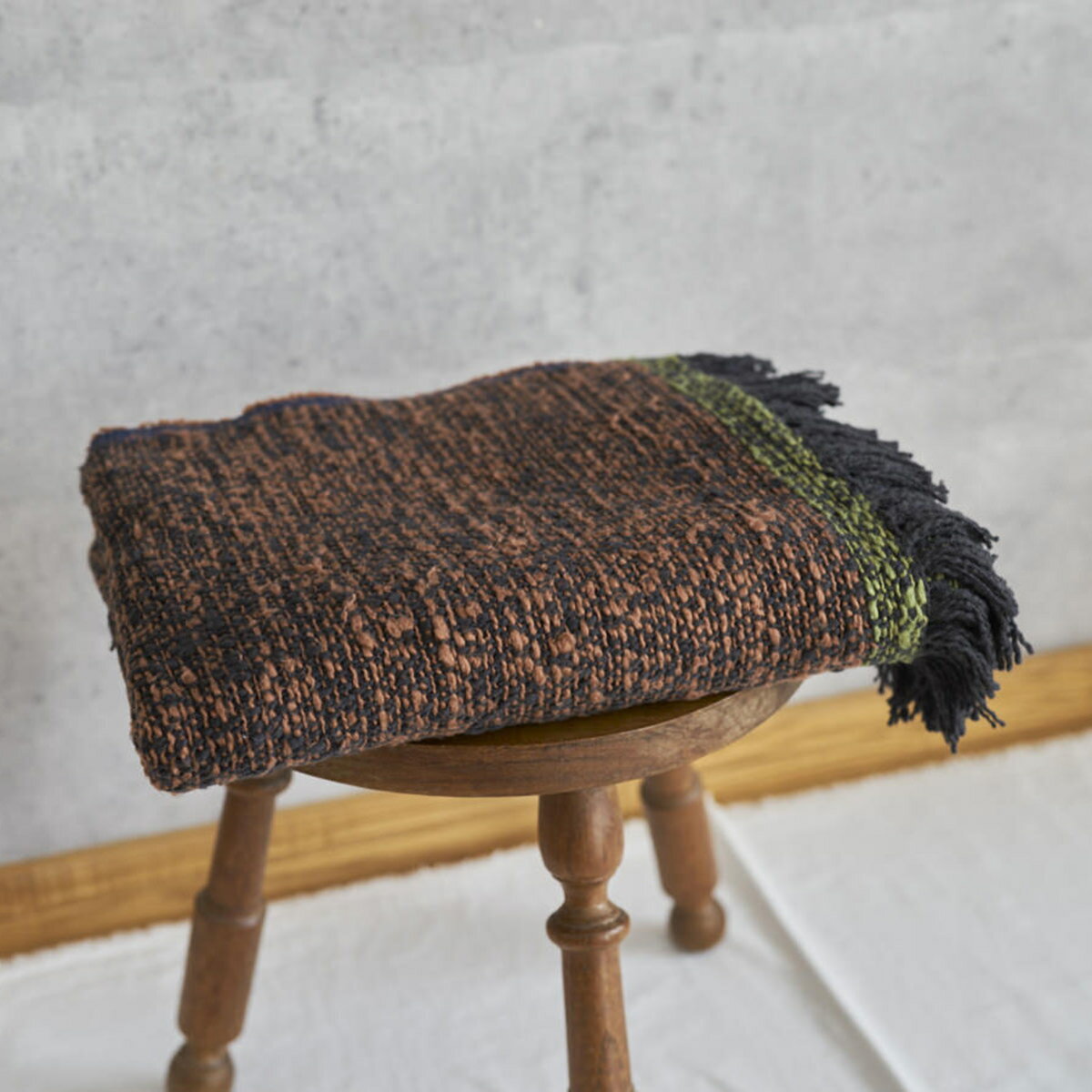 プレイスマット Mono S/M 2サイズ コットン 手織り アイボリー×ブラック ヘリンボーン 厚手 フリンジ付 両面使い インド製