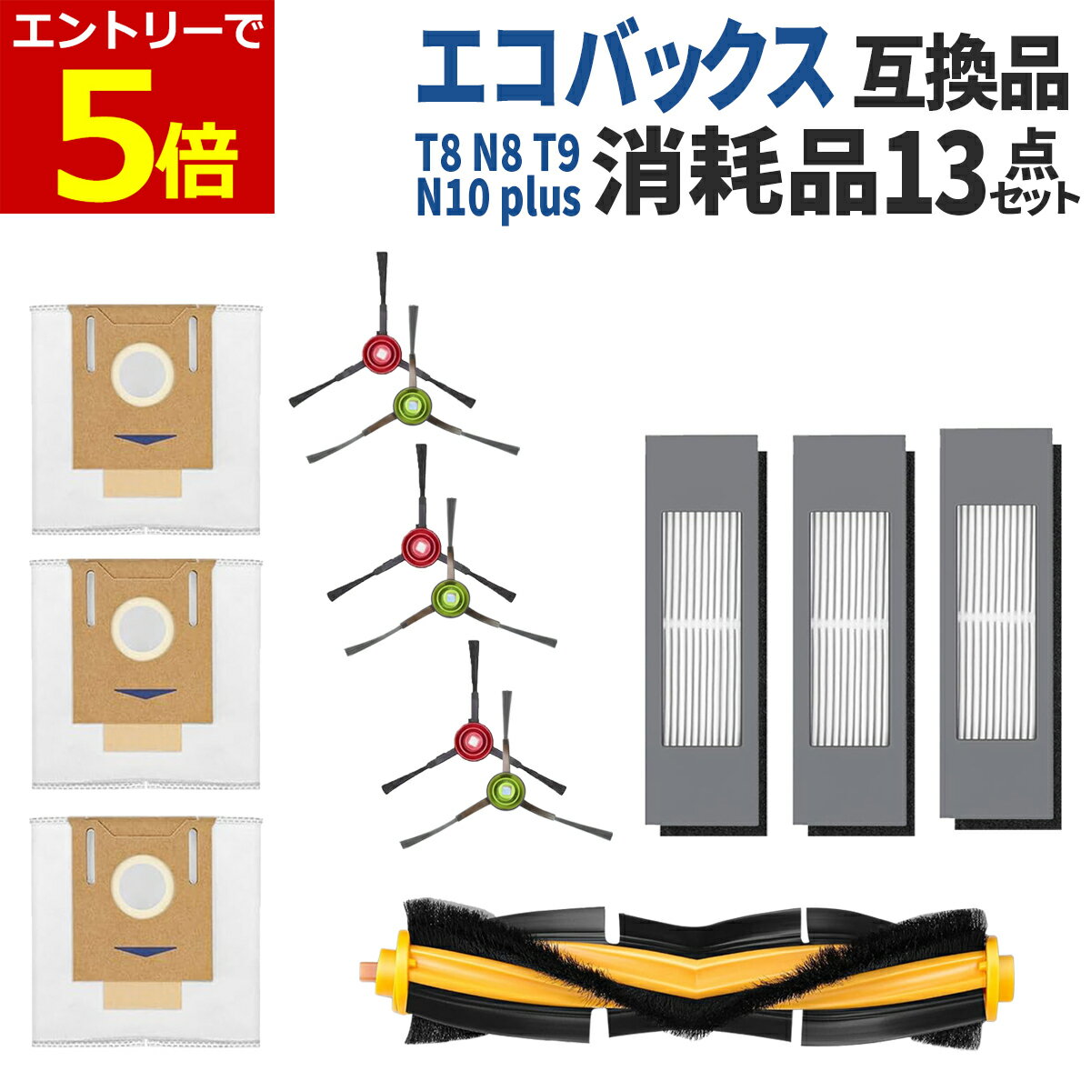 【1/26-1/29 当店エントリーで最大P5倍!&マラソン】Eufy X10 Pro Omni 用 消耗品 互換品 14点セット ロボット掃除機 アクセサリー フィルター 紙パック ブラシ モップ 消耗品セット 交換パーツ キット ユーフィ