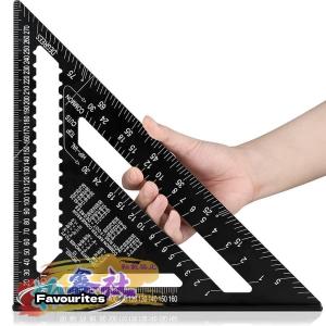 三角定規 木工用 丸鋸定規 30 30cm 両面目盛り 12インチ アルミ合金 ブラック 分度器 45度ケガキ工具 大工道具 測量用品 0-90度 ケガキ工具 木材カット 穴あけ
