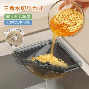 【三角水切りカゴ】マグネット固定式 三角コーナー 水切りラック シンクサイド収納ラック 防臭メッシュ付き 調理後片付け簡単 分解洗浄可能 取り外し簡単