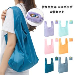 エコバッグ 折りたたみ 2個セット カラビナ付き おしゃれなマカロンシリーズ 軽量 コンパクトバッグ マチ付き 買い物袋 メンズ レディース ショッピングバッグ