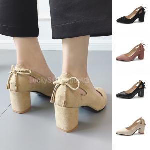 パンプス 走れるパンプス スエード調 リボン 6cmヒール 太いヒール ポインテッドトゥ レディース 魔法の美脚 大きいサイズ カジュアル フォーマル おしゃれ