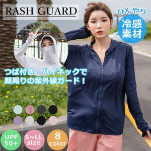 ラッシュガード レディース つば付き 冷感 ハイネック UVカット 体型カバー 長袖