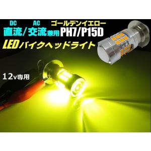 直流 DC 交流 AC 兼用 12v バイク 単車 原付 スクーター LED PH7 ヘッドライト バルブ 黄色 ゴールデン イエロー P15D HiLo切替