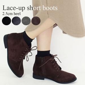 【20%OFFクーポン対象】ブーツ レースアップ ショートブーツ レディース フラット 編み上げ サイドジップ 履きやすい