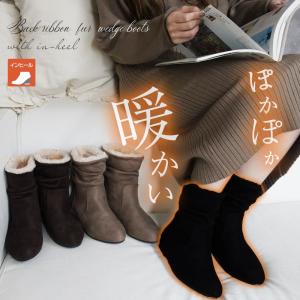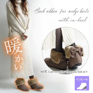 【40%OFFクーポン対象】ショートブーツ レディース インヒール ファー シークレットブーツ バックリボン 50代 40代 冬