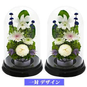 仏花 プリザーブドフラワー お供え 1対 ガラス ブリザードフラワー 法事 御供 仏壇用 新盆 初盆 アートフォーシーズン【対デザイン お供花Glass】