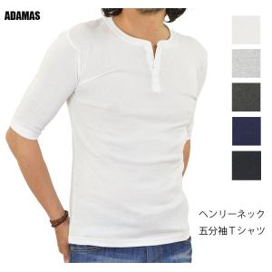 Tシャツ メンズ 半袖 ヘンリーネック 五分袖 5分袖 無地 ヘンリーネックTシャツ カットソー インナー 春 夏 秋 シンプル 白 黒 グレー ネイビー(濃紺)