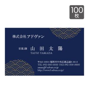 名刺 印刷 作成 ショップカード カラー100枚 テンプレートで簡単作成 紺 和風 和柄 吉祥柄 青海波 card-223