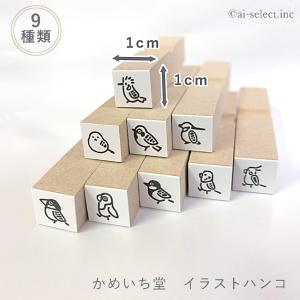 イラストハンコ かめいち堂 ミニ判子 スタンプ 1cm角 小さい鳥の仲間たち スケジュール帳 手帳 可愛い 文具 シマエナガ スズメ オカメインコ kss