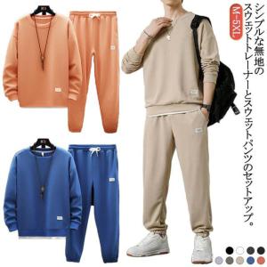 メンズ 上下 スウェット セットアップ 春 スウェット スエット 秋 スエット 無地 部屋着 トレーナー レイヤード風 スウェットパンツ ルームウェア
