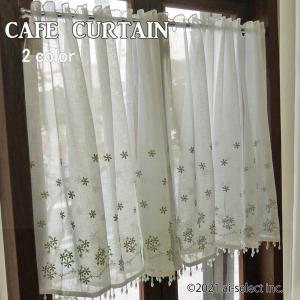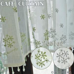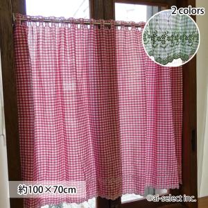 New カフェカーテン ポスト投函で送料無料 ギンガムチェック 約100×70cm セミロング 小花 刺繍 日本製 赤 緑 棚隠し ワッフル調生地 おしゃれ 可愛い 目隠し