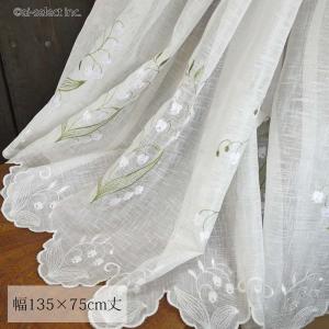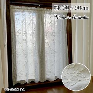 ai 即納 人気の小花刺繍 縦45cm 送料無料 可愛いくてお手入れ簡単 半透明のカフェカーテン アミプチ 赤い小花 ショート 小窓 可愛い 綺麗 目隠し 棚隠し おしゃ