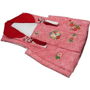 七五三 3歳 正絹 被布コート 女の子 赤 絞り 刺繍入り S寸 ht338 お宮参り 着物 祝着 初着 産着 お祝い ギフト