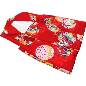 七五三 3歳 正絹 被布コート 女の子 赤地 手まり柄ht340 お宮参り 着物 祝着 初着 産着 お祝い ギフト