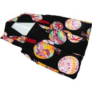 七五三 3歳 正絹 被布コート 女の子 黒地 手まり柄ht341 お宮参り 着物 祝着 初着 産着 お祝い ギフト
