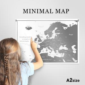 064 ヨーロッパ 欧州地図 ポスター インテリア A2 グレー おしゃれ 世界地方図 ミニマルマップ