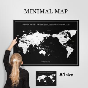 057 世界地図 ポスター インテリア A1 モノクロ おしゃれ 国名 白地図 こども 壁 ミニマルマップ