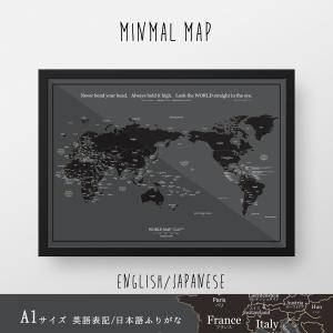 049 046 世界地図 A1 グレー ブラック ポスター インテリア おしゃれ 国名 白地図 こども 壁 ミニマルマップ モノクロ
