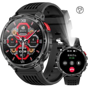 【2025究極新設計】スマートウォッチ 1.85インチ超大画面 丸型 軍用規格 懐中電灯 730mahバッテリー smart watch Bluetooth5.3 IP68防水 スポーツウォッチ