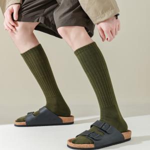 メンズ靴下 ms2407 秋冬 無地 ハイソックス リブ編み 厚手 靴下 ソックス