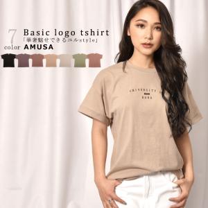 送料無料 主張し過ぎなさが良いアクセントロゴ 華奢見え カットソーTシャツ レディース 半袖 プリント 体型カバー かわいい 大人 おしゃれ MSP