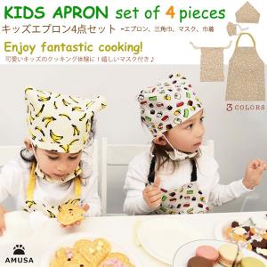 キッズエプロン4点セット 三角巾 マスク 収納袋 キッズ ベビー 男の子 女の子 幼稚園 保育園 小学校 料理教室 クッキング スイーツ
